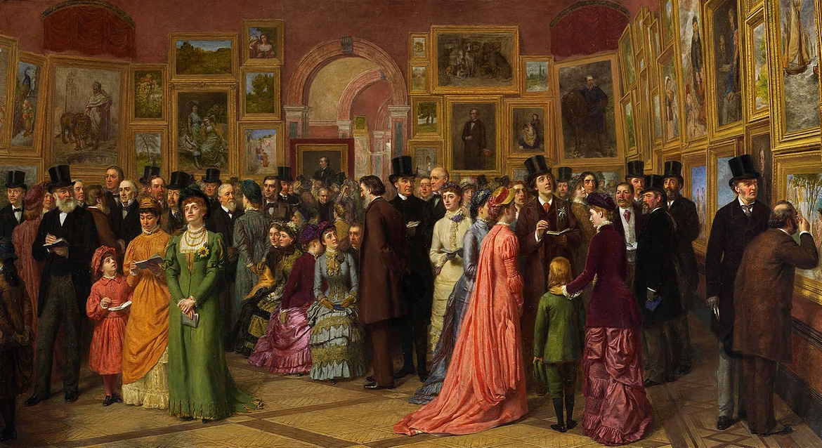 "Частна изложба в Кралската академия" (1883) на Уилям Пауъл Фрит (1819–1909).