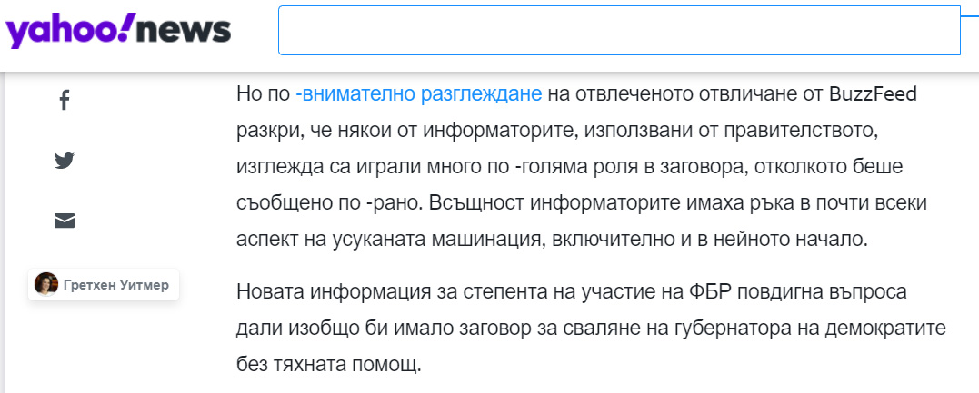Статия от Yahoo News обяснява как агенти на ФБР са провокирали няколко идиота да се опитат да отвлекат губернатора на щата Мичиган Гречен Уитмър. Схемата е проста - управниците използват агенти под прикритие на агенциите за сигурност за да провокират насилие от страна на дисидентски групи и после използват случая, за да обърнат общественото мнение срещу дисидентите и да арестуват и разорят отделни дисиденти като предупреждение за останалите.
